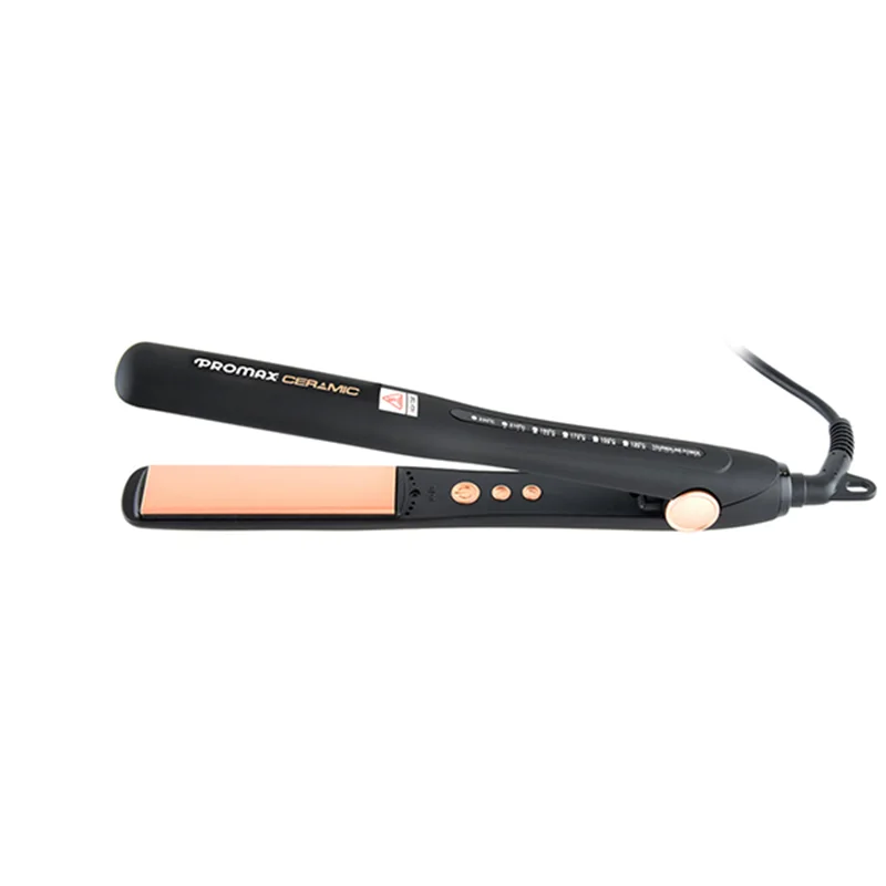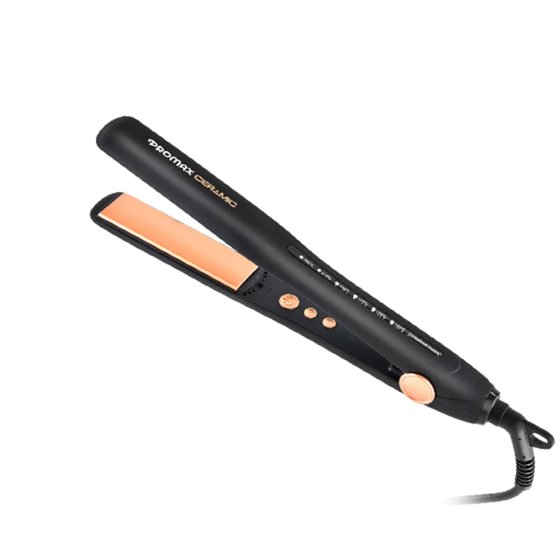 اتو مو پرومکس مدل 5757kبا توان 55 وات دارای صفحات عریض از جنس سرامیک با روکش کراتین می باشد که اتو مویی فوق حرفهای مناسب آرایشگاه بوده و با صرف زمان کم،موها را به راحتی صاف میکند.خاصیت یون سازی صفحات این اتو مو با تولید یونهای منفی موجب حذف الکتریسیته ساکن در موها و مانع از آسیب رسیدن و همچنین حفظ درخشندگی و لطافت طبیعی آنها می گردد.درضمن روکش مخصوص روی این صفحات با القای کراتین به سطح مو با مراقبت بیشتری آنها را صاف کرده و کوتیکول مو را پوشش میدهد.اتومو سرامیکی 5757k پرومکس دارای قابلیت تنظیم درجه حرارت صفحات از 130 تا 230درجه سانتیگراد میباشد،که به کمک چراغهای نشانگر تعبیه شده روی بدنه از دمای انتخابی مطلع خواهید شد.به دلیل عملکرد دستگاه در محدوده ولتاژ جهانی 110-240 ولت میتوان آن را در هر جای دنیا همراه با خود داشته و استفاده نمایید.سیم بلند 3 متری این اتو محدوده وسیعی برای کار در اختیارتان قرار داده و به دلیل قابلیت چرخش360 درجه مزاحمتی هنگام کار برای شما ایجاد نمی کند.همچنین میتوانید اتو رو از طریق حلقه آویز هر کجا مایل باشید آویز کنید و موقع جابهجایی از کیف مخصوصش استفاده کنید.