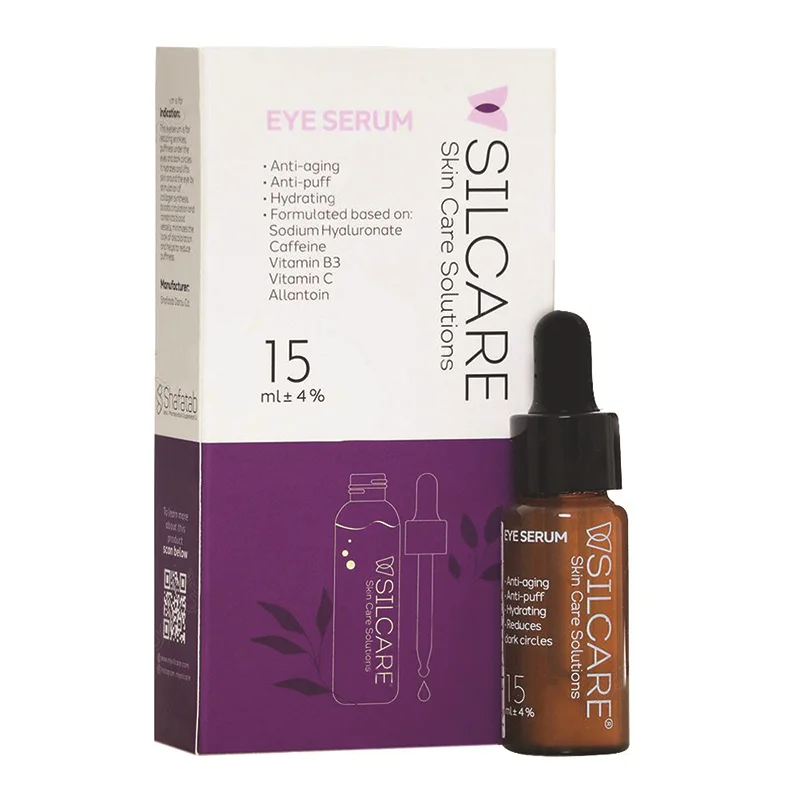 این سرم چشم توسط آزمایشگاه Silcare برای کاهش چین و چروک، پف زیر چشم و تیرگی چشم فرموله شده است. هیالورونیک اسید موجود باعث تحریک سنتز کلاژن می شود و پوست اطراف چشم را هیدراته کرده و سفت می کند. گردش خون را تقویت کرده و رگ های خونی را منقبض می کند، تغییر رنگ را به حداقل می رساند و به کاهش پف کمک می کند. به خاطر وجود آلانتوئین بافت های تحریک شده و خارش پوست پلک را بهبود می بخشد و به کاهش التهاب پوست و مرطوب شدن پوست کمک می کند.ضد چروک، ضد پف، آبرسان و کاهنده تیرگی دور چشمضد التهاب و خارش پوست پلکحاوی مواد موثره اصلی ویتامین B3، سدیم هیالورونات، کافئین، ویتامین C و آلانتوئین